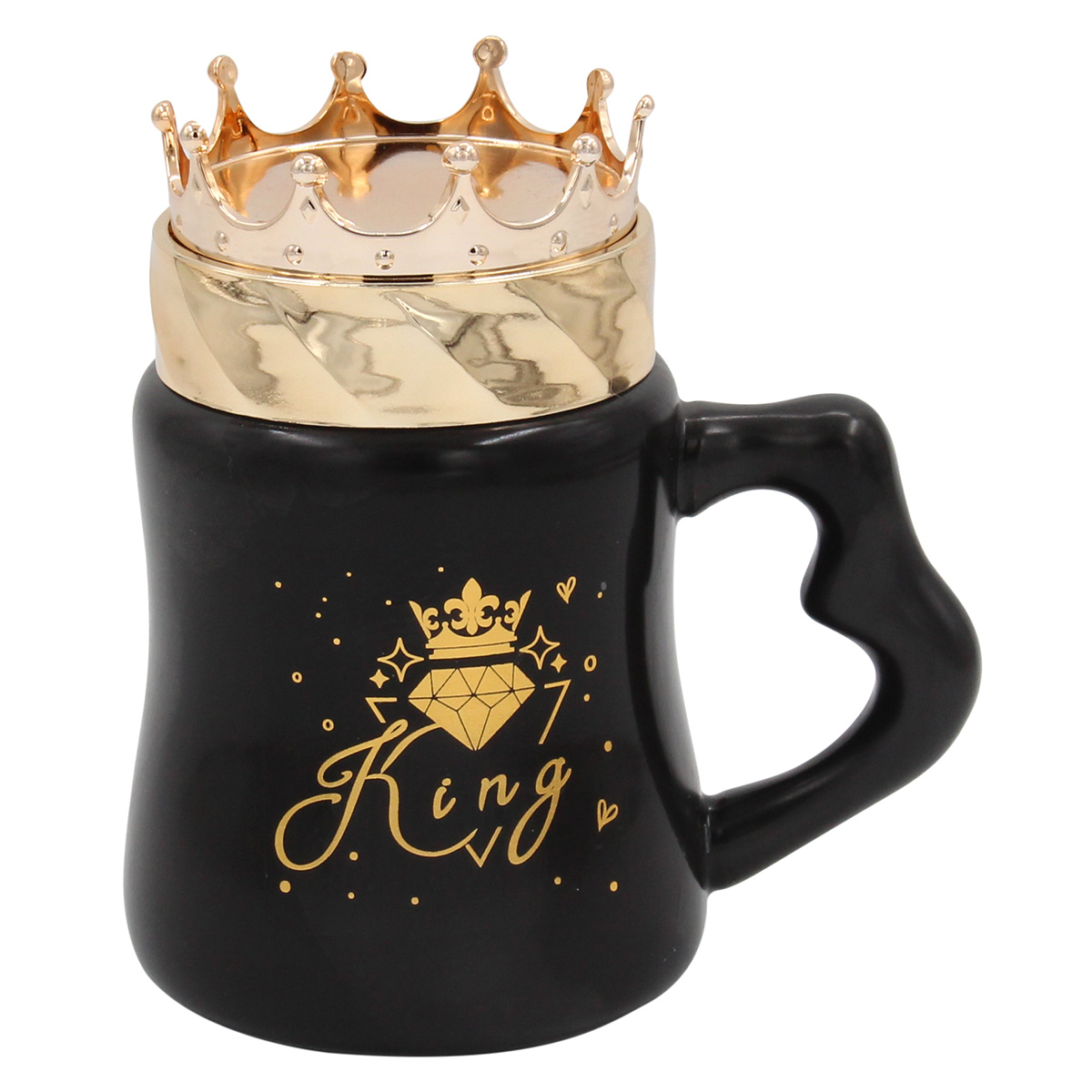 Αυτή η κούπα κεραμική 400 ml σε μαύρο και χρυσό διαθέτει πλαστικό χρυσό καπάκι με την επιγραφή KING. Με διαστάσεις Φ9Χ14 εκ. είναι ιδανική για ζεστά ή κρύα ροφήματα. Προσφέρει στιλ και πρακτικότητα.