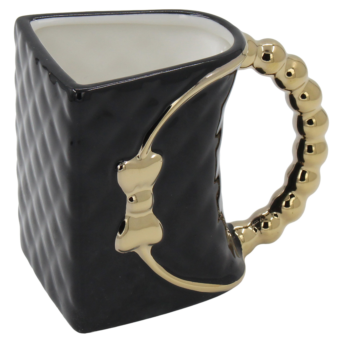 Κούπα κεραμική διακοσμ. 350 ml 12Χ8Χ10,5 εκ. Τσάντα Μαύρο Χρυσό - KESKOR 79212-1