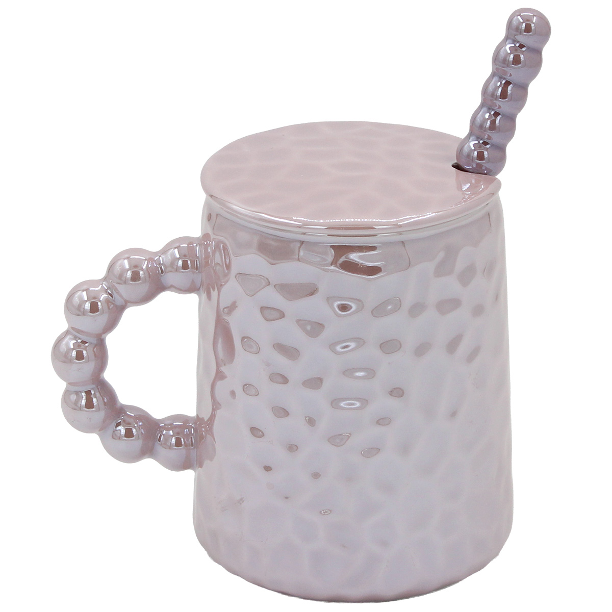Κούπα κεραμική διακοσμ. 450 ml 13Χ9Χ11 εκ. Μωβ πέρλα με καπάκι και κουταλάκι - KESKOR 79214-1