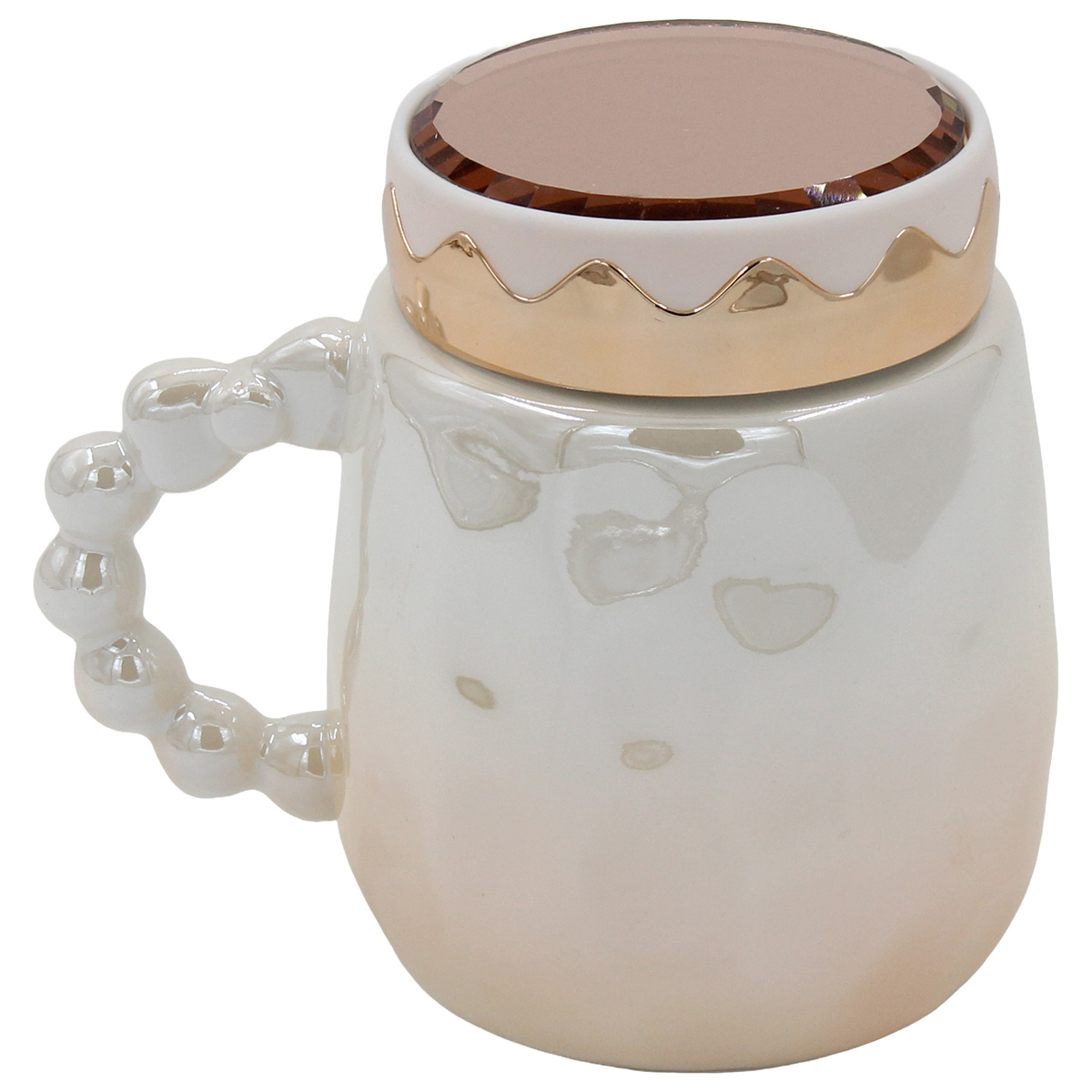 Κούπα κεραμική διακοσμ. 450 ml 13Χ9Χ12 εκ. Σομόν πέρλα με καπάκι καθρέπτη - KESKOR 79209-2