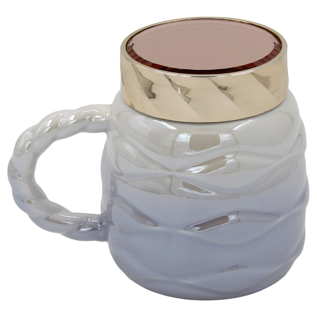 Κούπα κεραμική διακοσμ. 450 ml 14Χ10Χ12 εκ. Μωβ πέρλα με καπάκι καθρέπτη - KESKOR 79208-2