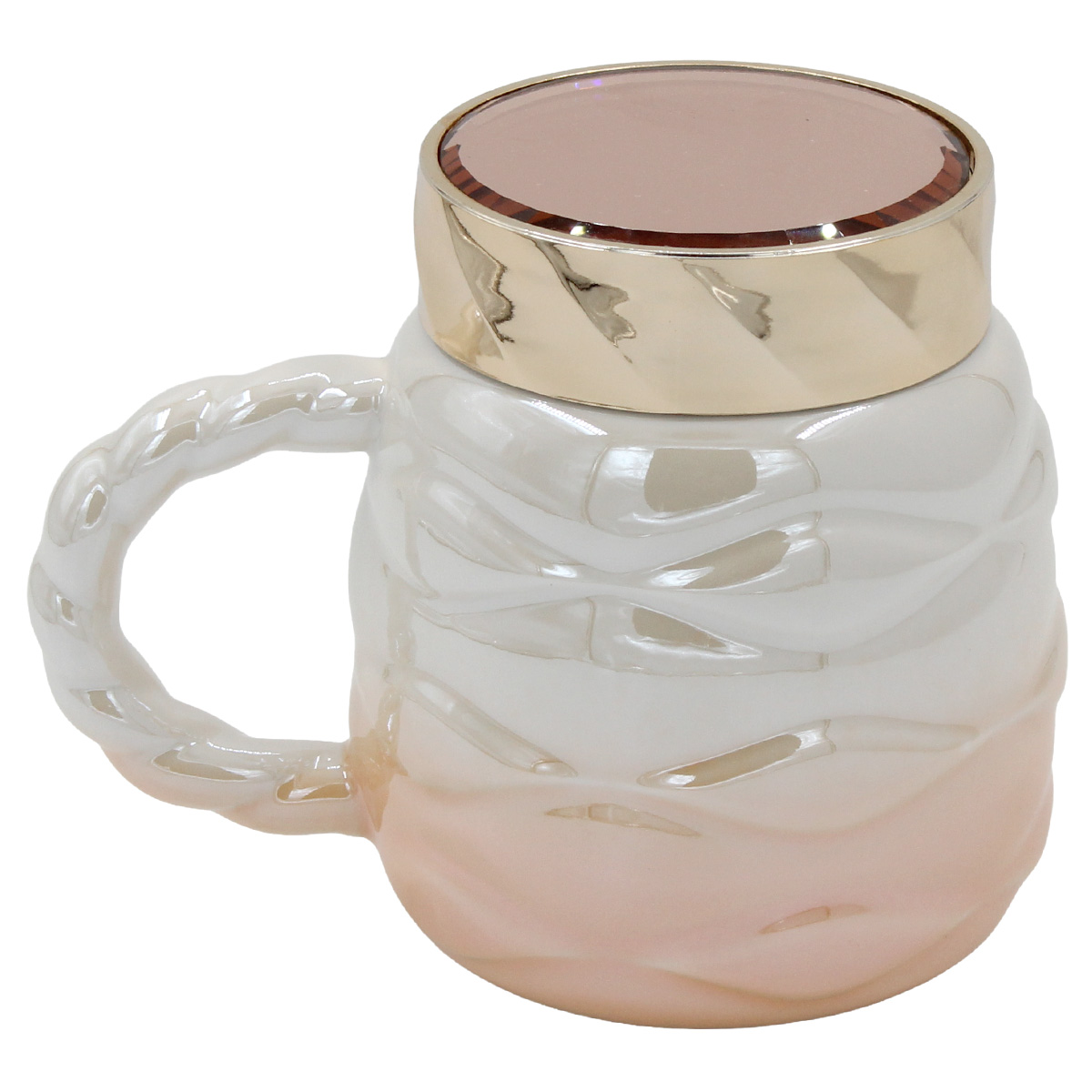 Κούπα κεραμική διακοσμ. 450 ml 14Χ10Χ12 εκ. Σομόν πέρλα με καπάκι καθρέπτη - KESKOR 79208-1