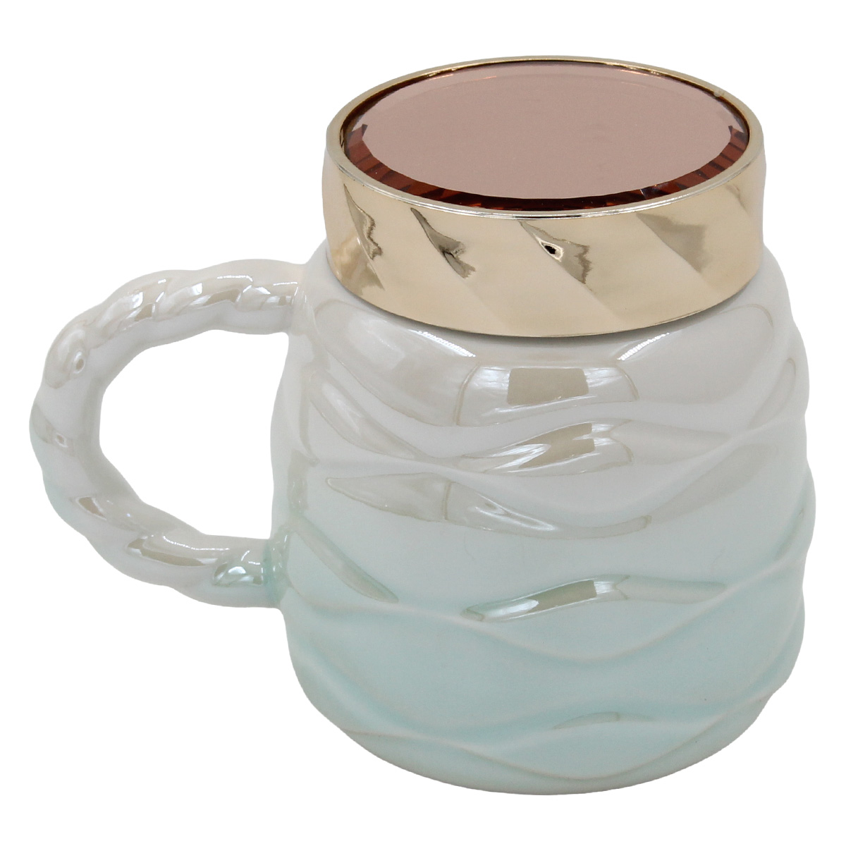 Κούπα κεραμική διακοσμ. 450 ml 14Χ10Χ12 εκ. Τιρκουάζ πέρλα με καπάκι καθρέπτη