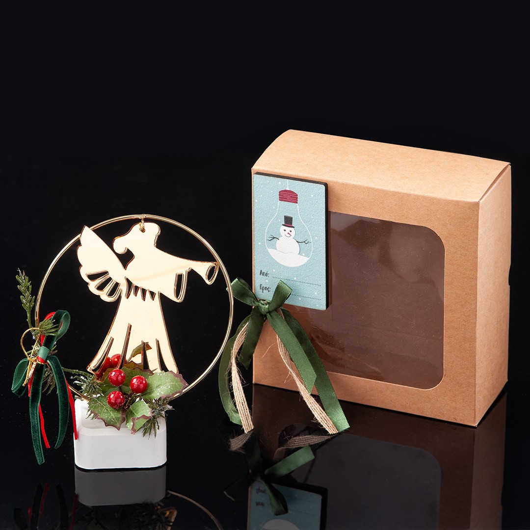 Χριστουγεννιάτικο διακοσμητικό σε γύψινη βάση με plexiglass χρυσό καθρέπτη αγγελάκι . Η βάση είναι στολισμένη με γκι και βελούδινες κορδέλες. Στην τιμή περιλαμβάνεται το χάρτινο κουτί δώρου που είναι τοποθετημένο το γούρι και η ετικέτα αποστολής.
