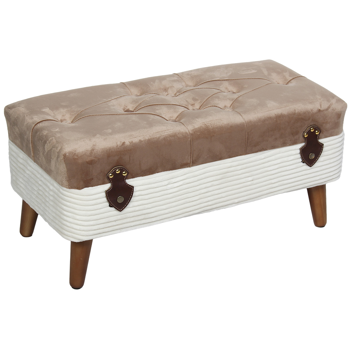 Μπαούλο - Σκαμπό ξύλινο 70Χ35Χ33 εκ. Βελουτέ - Γούνα Εκρού-Καφέ - KESKOR 52205-2