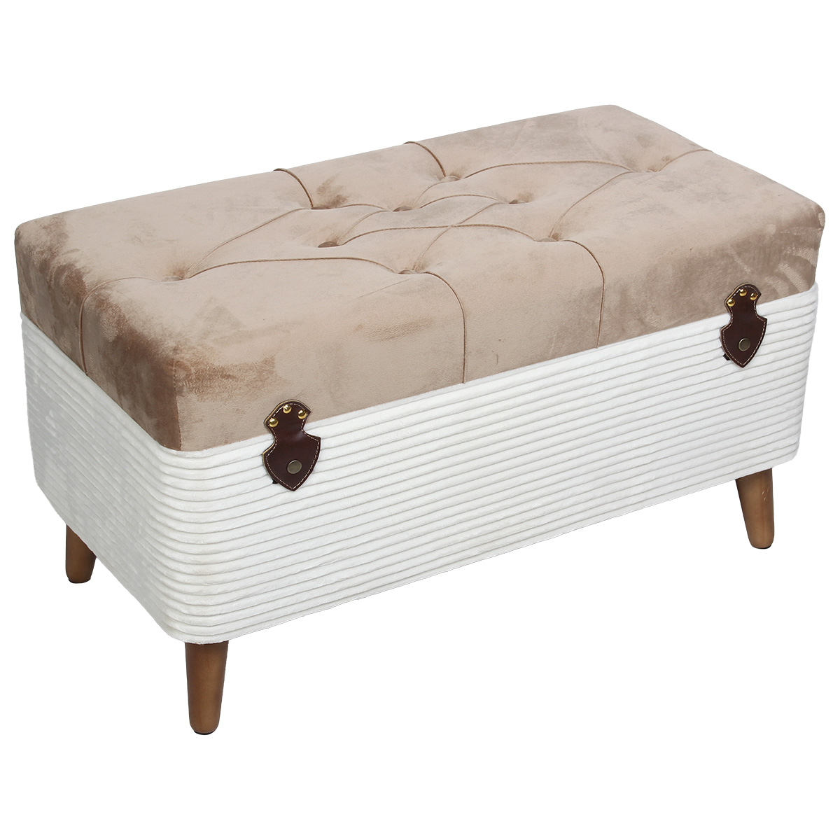 Μπαούλο - Σκαμπό ξύλινο 80Χ40Χ44 εκ. Βελουτέ - Γούνα Εκρού-Καφέ - KESKOR 52205-1