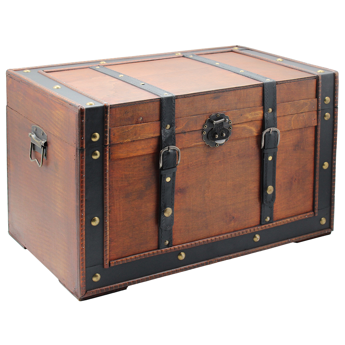 Μπαούλο αποθήκευσης ξύλινο 50Χ31,5Χ31 εκ. Καφέ με λεπτομέρειες PU