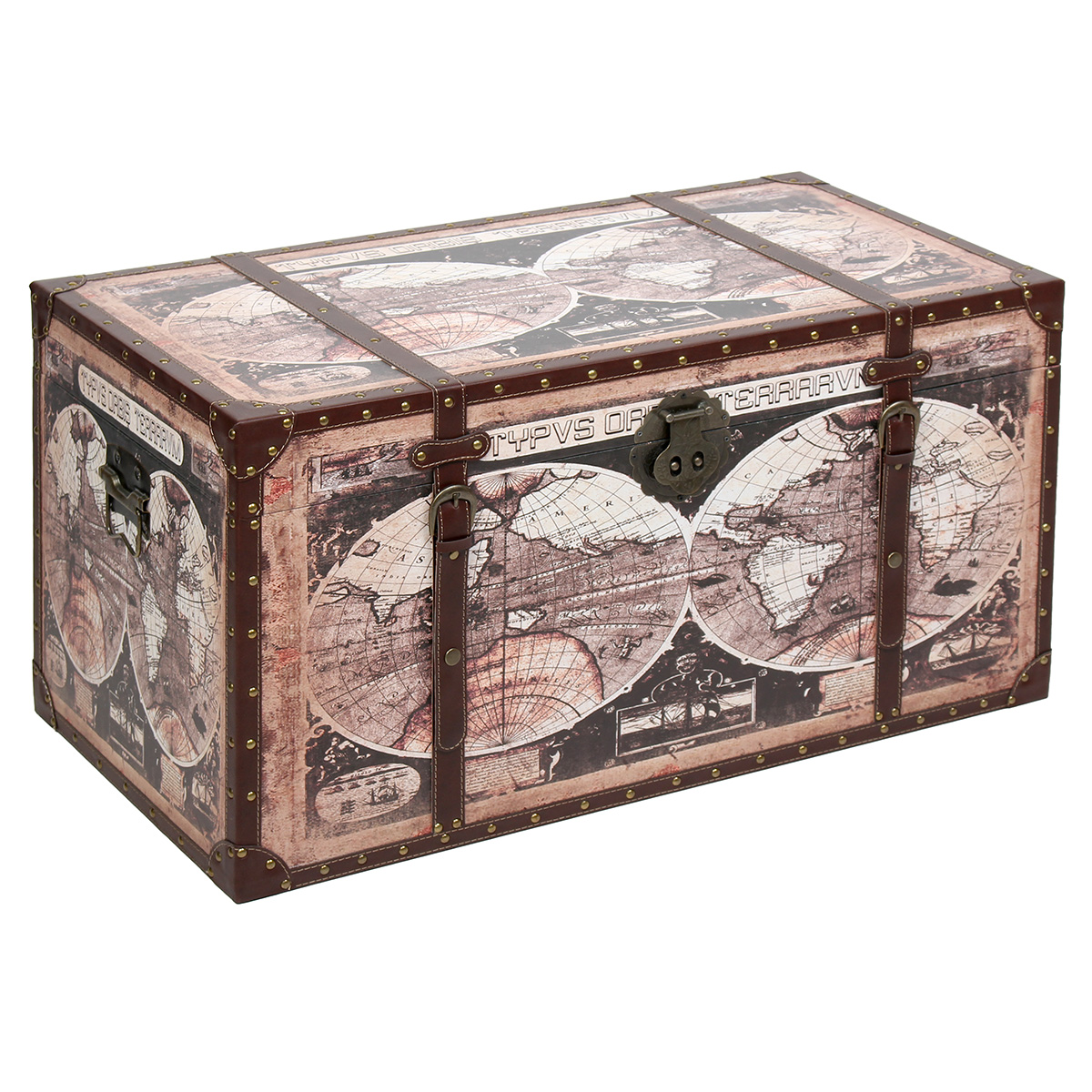Αυτό το ξύλινο μπαούλο αποθήκευσης 80Χ41Χ41 εκ. με επένδυση PU σε σχέδιο χάρτη προσδίδει vintage χαρακτήρα και προσφέρει άνετο αποθηκευτικό χώρο.