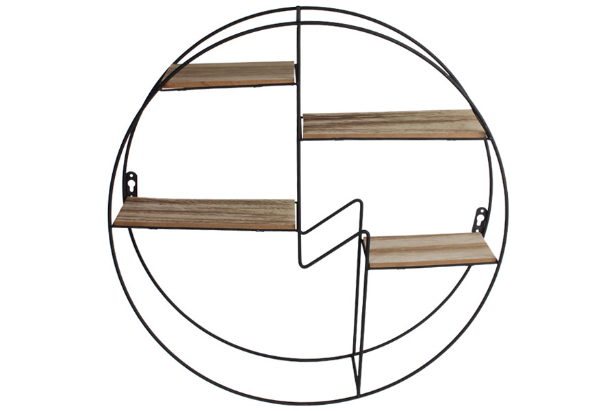 Ράφι τοίχου μεταλλικό στρογγυλό Φ50Χ12,5 εκ. με 4 ξύλινα ράφια