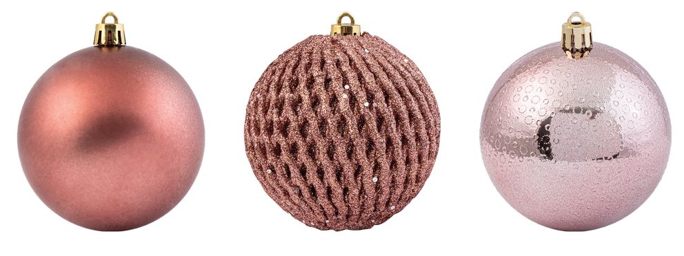 Ρόζ Χριστουγεννιάτικες Μπάλες 3 Χρώματα ,Σέτ 12 Τεμαχίων 8cm ,3 Σχέδια