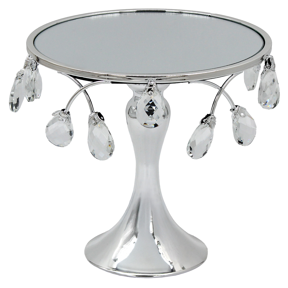 Τουρτιέρα – πιατέλα κολωνάτη μεταλλική Φ21Χ20 εκ. Ασημί με κρύσταλλα και καθρέπτη