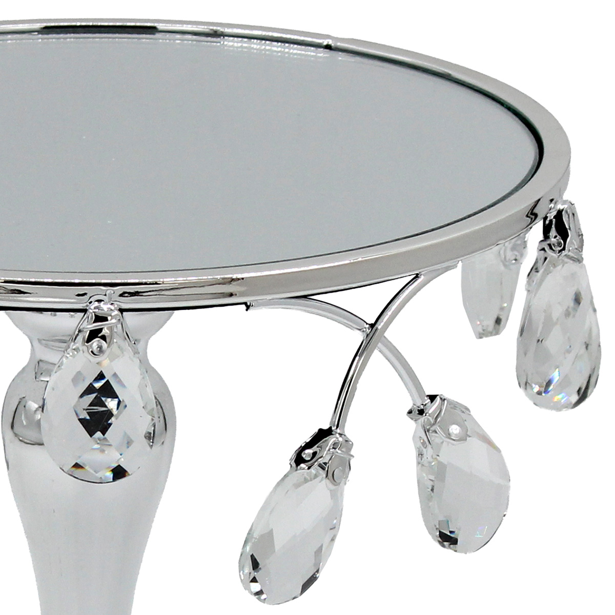 Τουρτιέρα – πιατέλα κολωνάτη μεταλλική Φ21Χ20 εκ. Ασημί με κρύσταλλα και καθρέπτη - KESKOR 43251-3
