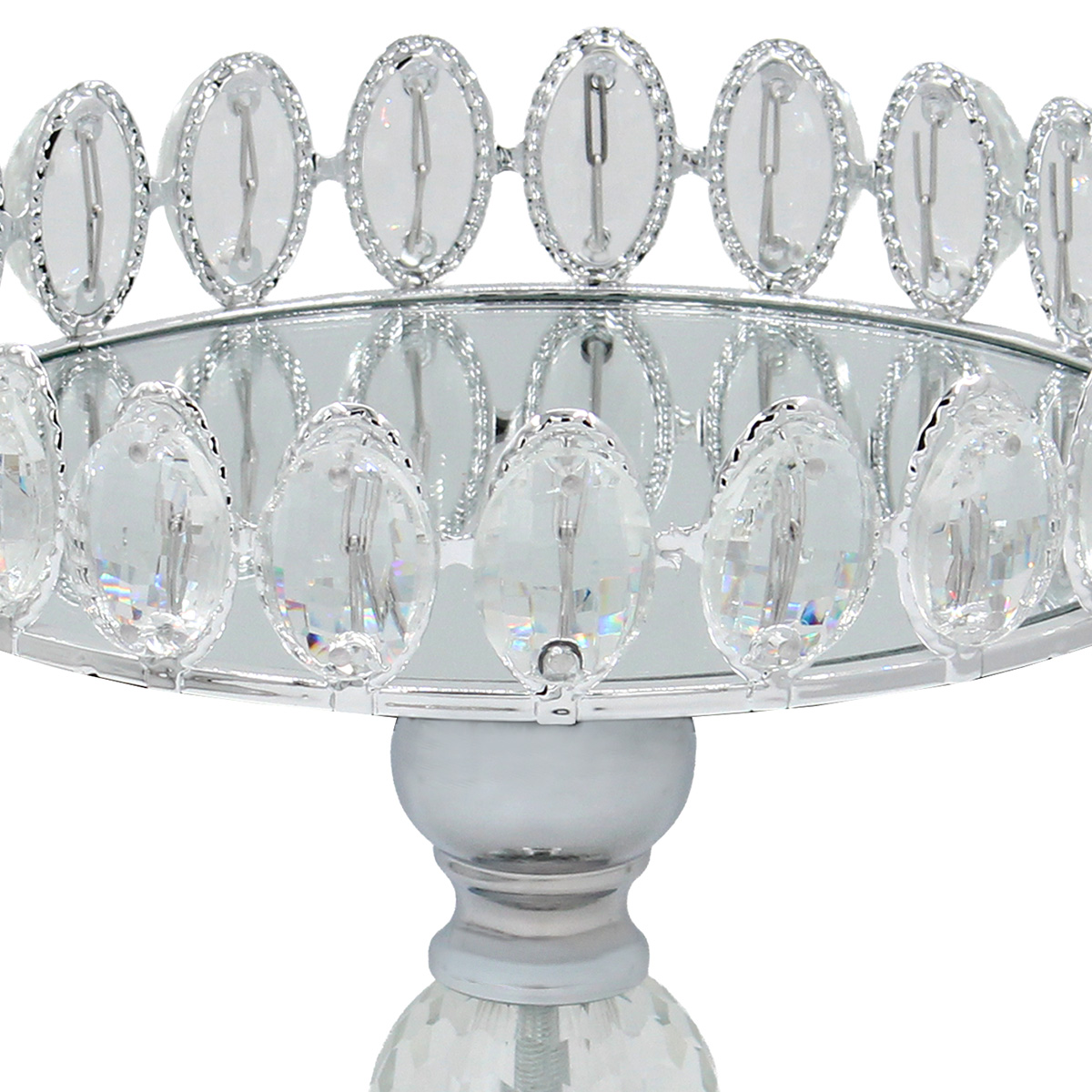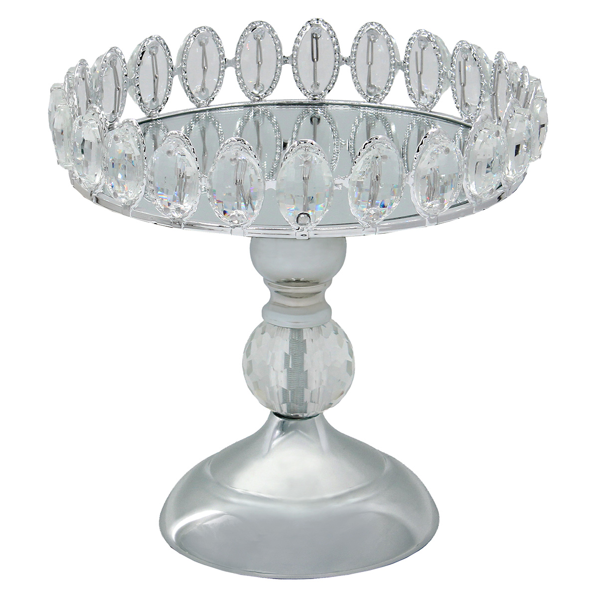Τουρτιέρα – πιατέλα κολωνάτη μεταλλική Φ22Χ21 εκ. Ασημί με κρύσταλλα και καθρέπτη - KESKOR 43257-2