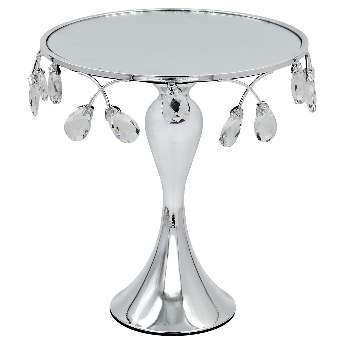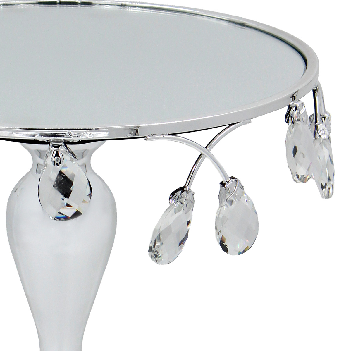 Τουρτιέρα – πιατέλα κολωνάτη μεταλλική Φ26Χ29 εκ. Ασημί με κρύσταλλα και καθρέπτη