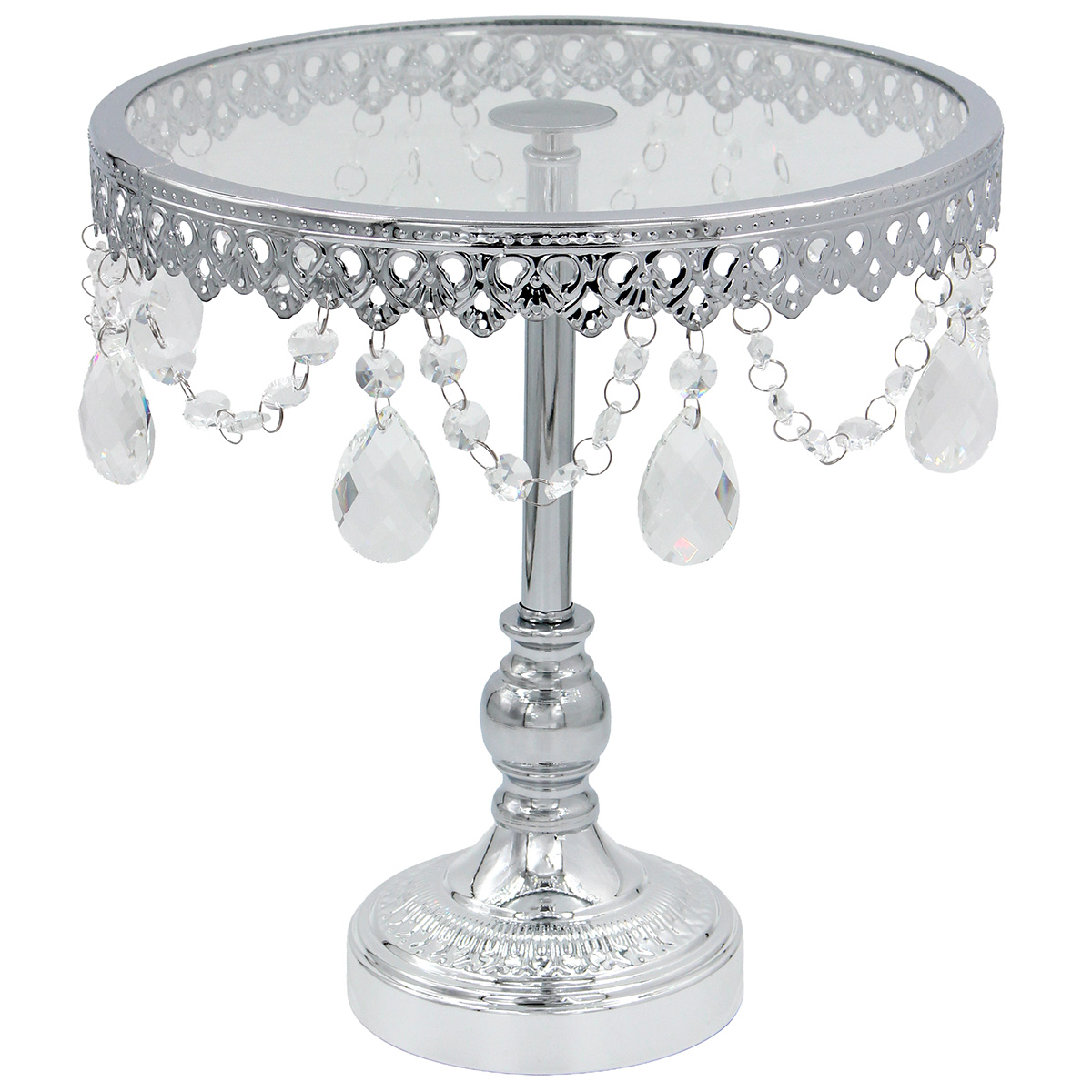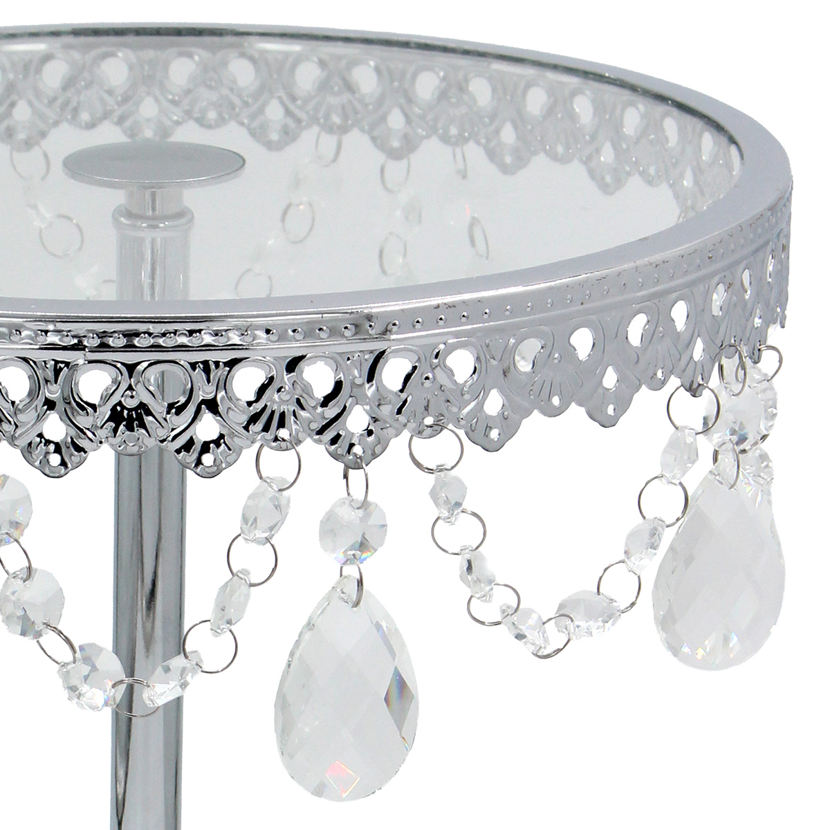 Τουρτιέρα – πιατέλα κολωνάτη μεταλλική Φ28Χ30 εκ. Ασημί με κρύσταλλα και γυάλινη επιφάνεια - KESKOR 43115-1