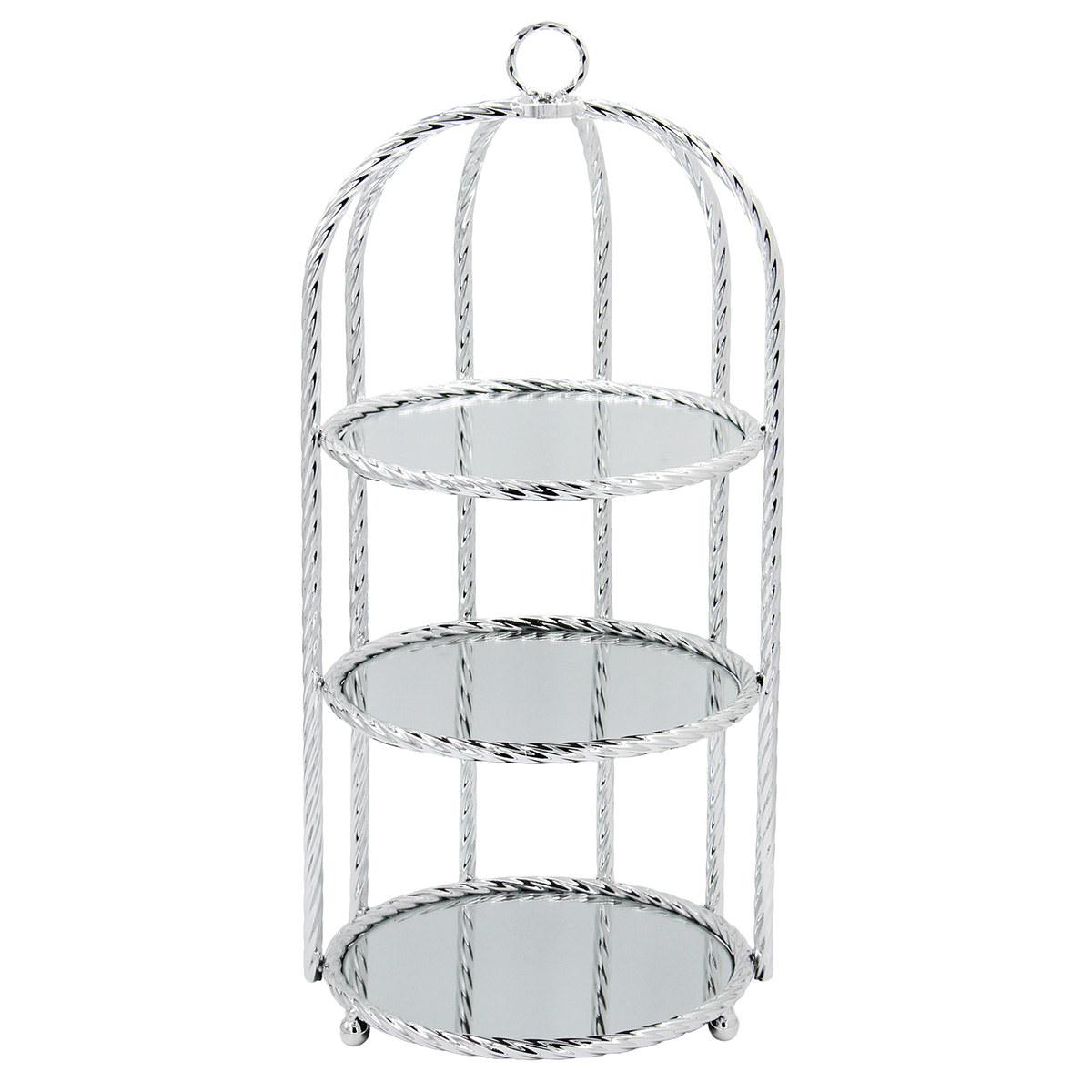 Τουρτιέρα – πιατέλα μεταλλική 3/όροφη Φ22Χ50 εκ. Ασημί με καθρέπτες - KESKOR 43248