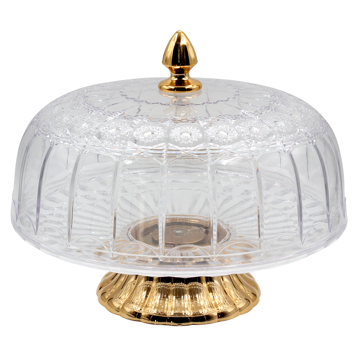Τουρτιέρα - πιατέλα πλαστική κολωνάτη με καπάκι Φ31Χ25 εκ. διάφανη με χρυσό - KESKOR 42647-2