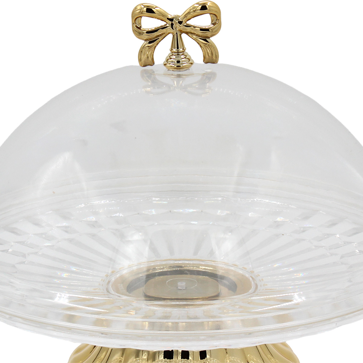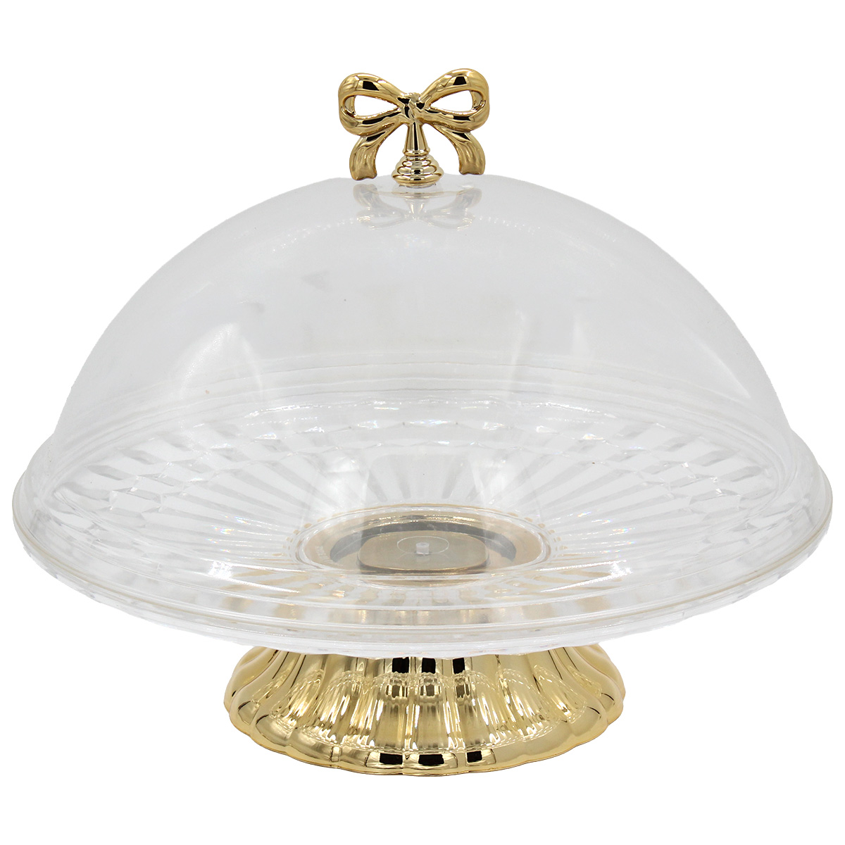 Τουρτιέρα - πιατέλα πλαστική κολωνάτη με καπάκι Φ31Χ25 εκ. Διάφανη με Χρυσό - KESKOR 42687-1