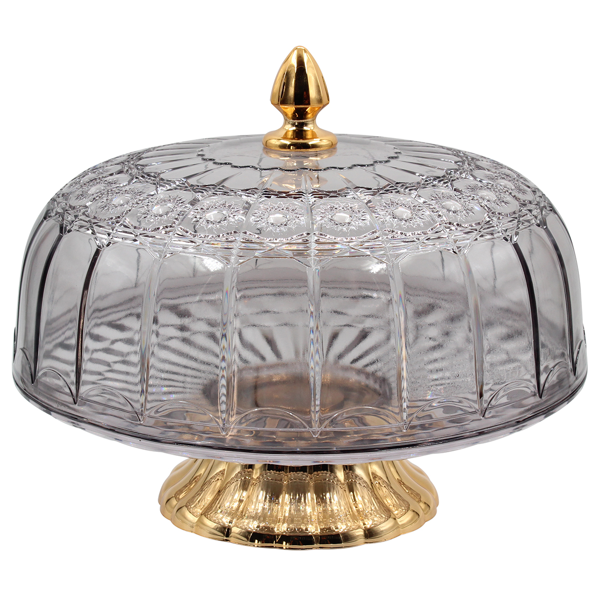 Τουρτιέρα - πιατέλα πλαστική κολωνάτη με καπάκι Φ31Χ25 εκ. φιμέ με χρυσό - KESKOR 42647-1