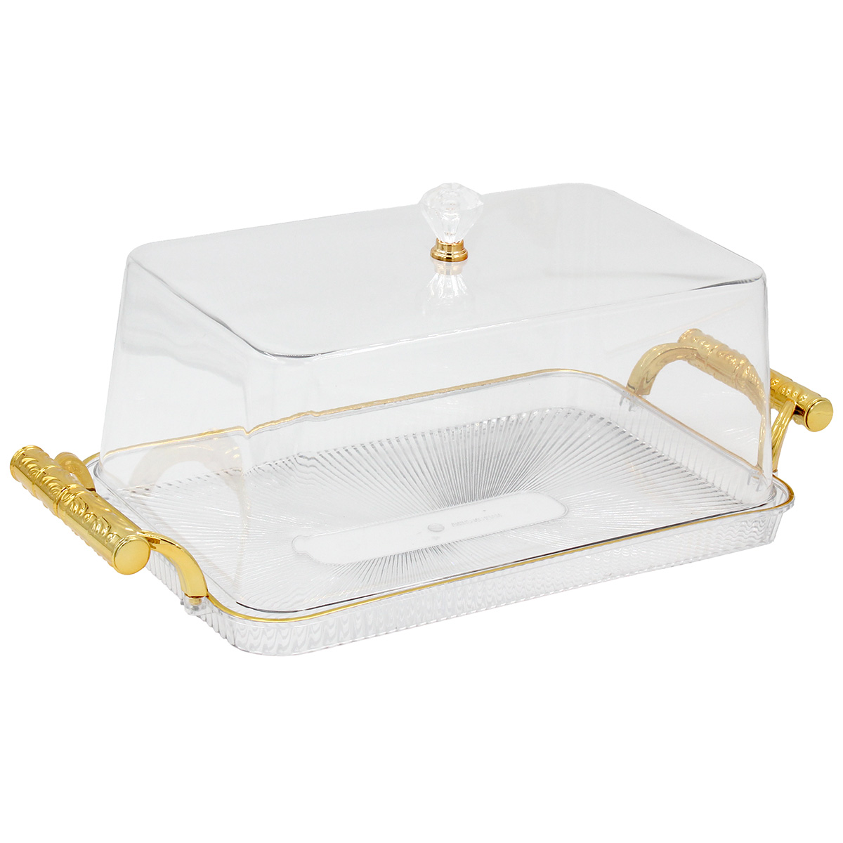 Τουρτιέρα - πιατέλα πλαστική με καπάκι 41Χ20Χ14 εκ. με χρυσό - KESKOR 42674