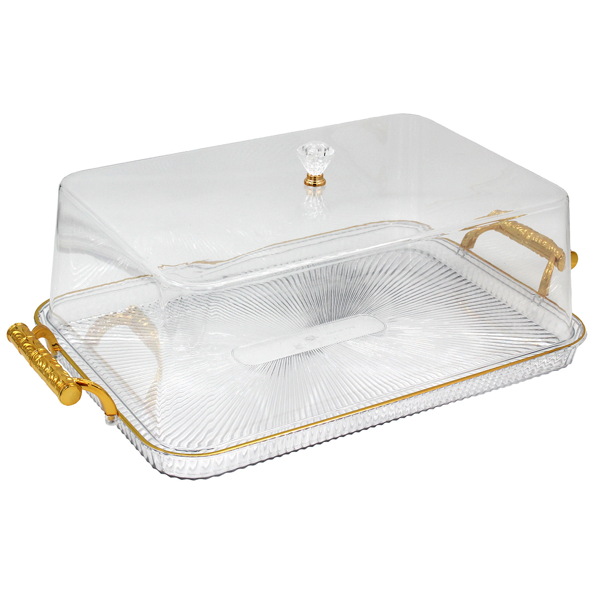 Τουρτιέρα - πιατέλα πλαστική με καπάκι 50Χ30Χ15 εκ. με χρυσό - KESKOR 42675