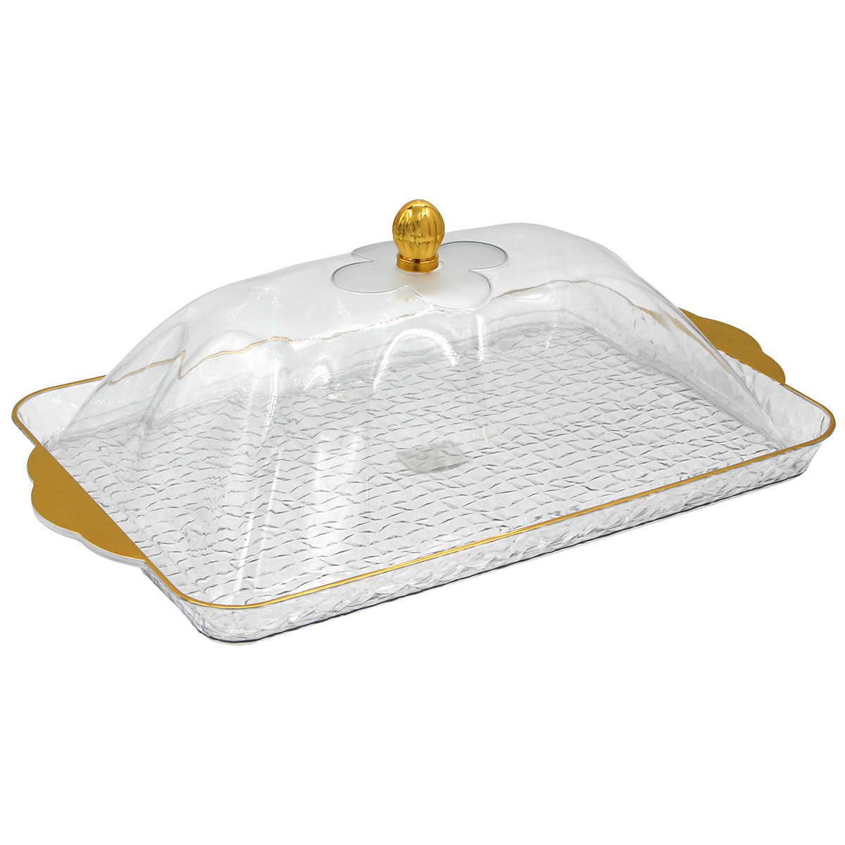 Τουρτιέρα - πιατέλα πλαστική με καπάκι 51Χ31,5Χ16 εκ. με χρυσό