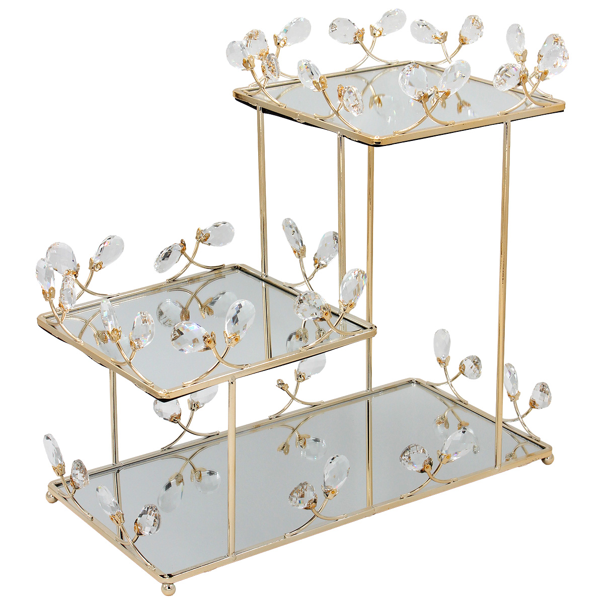 Τουρτιέρα - Stand διακοσμητικό μεταλλικό 41Χ21Χ40 εκ. Χρυσό με κρύσταλλα και καθρέπτες