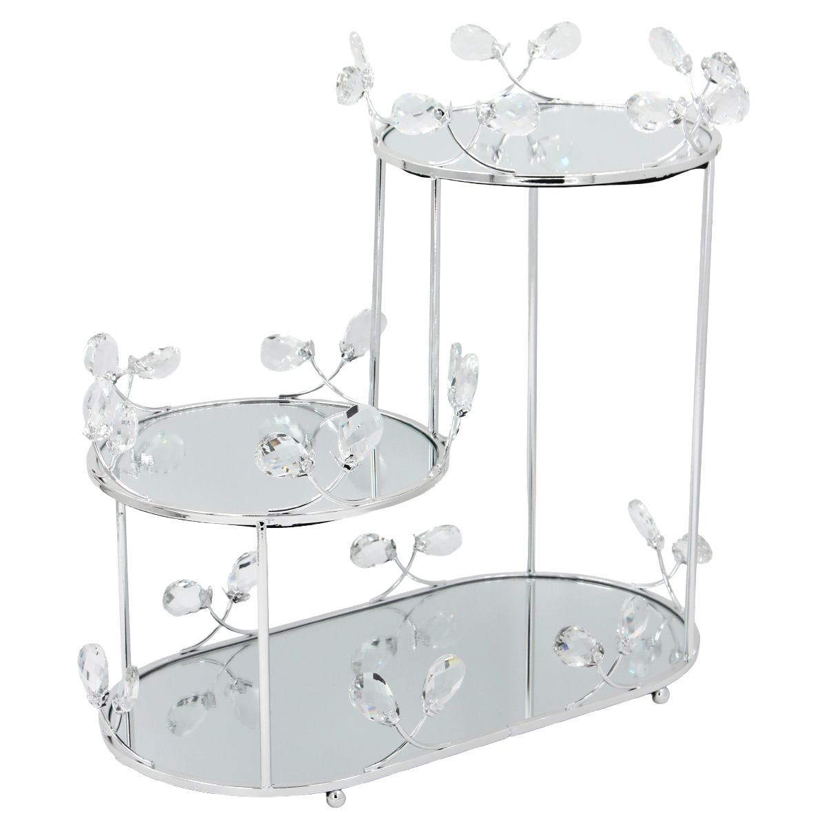 Τουρτιέρα - Stand διακοσμητικό μεταλλικό 42Χ22Χ40 εκ. Ασημί με κρύσταλλα και καθρέπτες