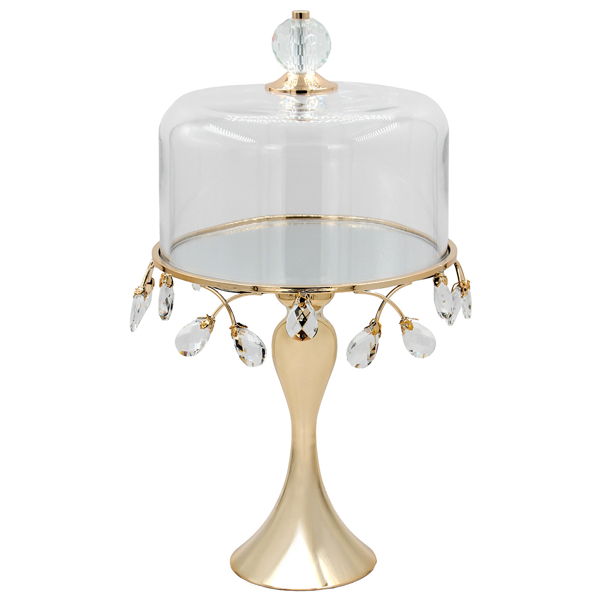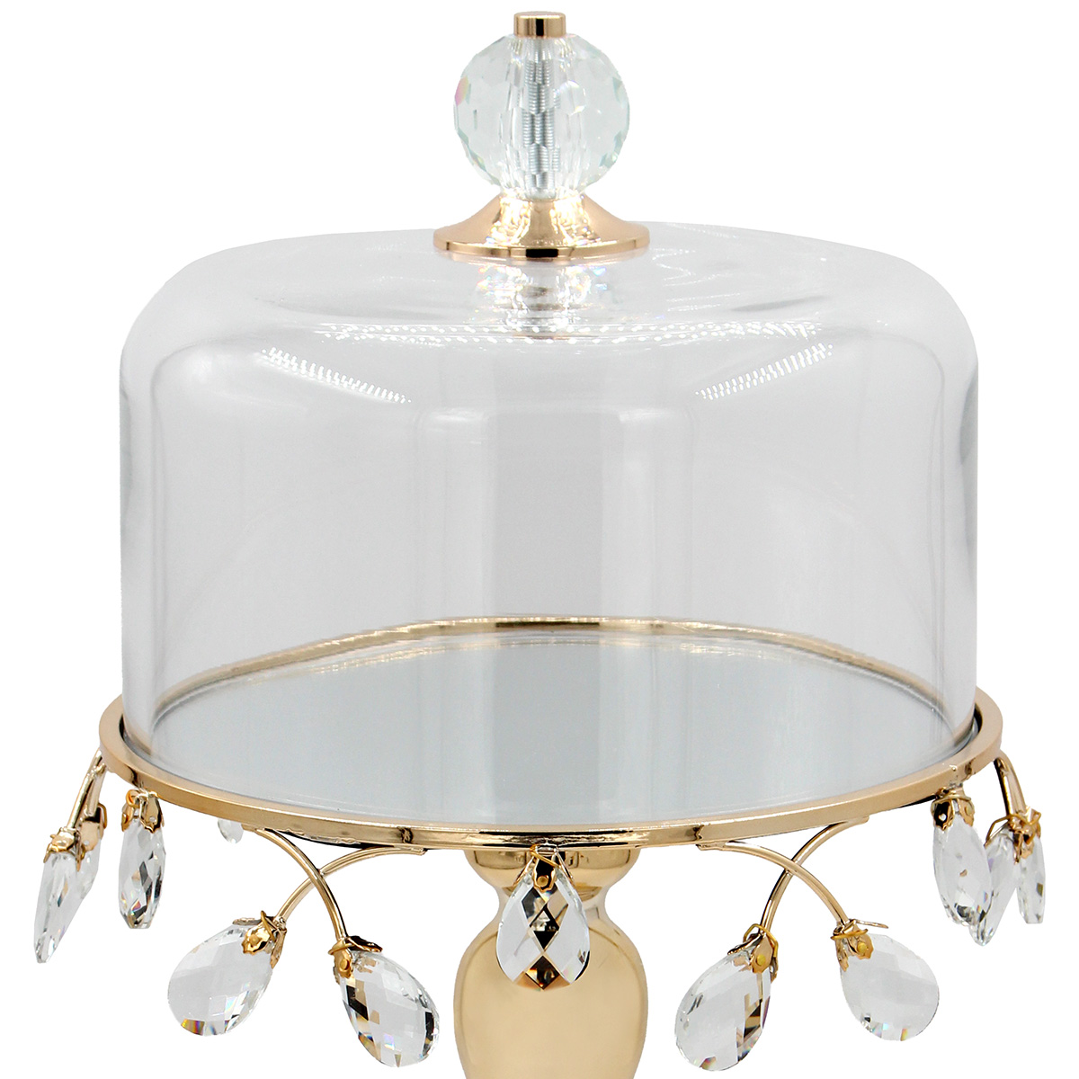Τουρτιέρα μεταλλική κολωνάτη Φ28Χ49 εκ. Χρυσή με γυάλινο καπάκι και κρύσταλλα - KESKOR 43271