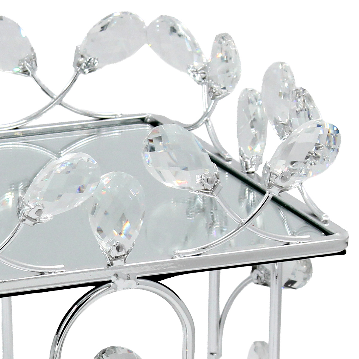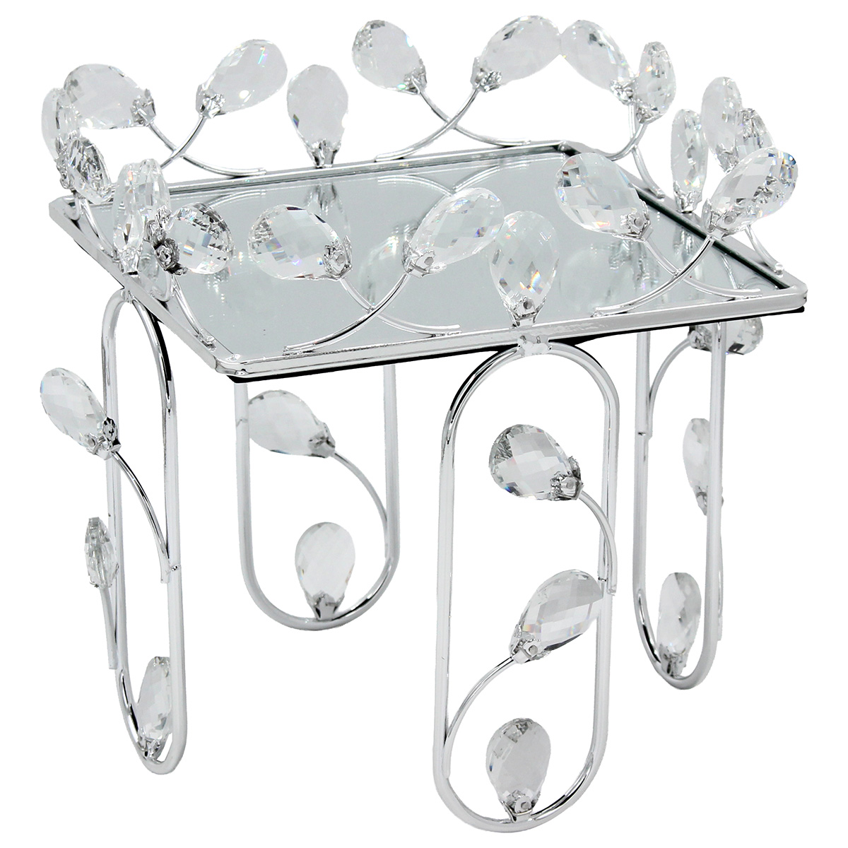 Τραπεζάκι - Stand διακοσμητικό μεταλλικό 26Χ26Χ25 εκ. Ασημί με κρύσταλλα και καθρέπτη