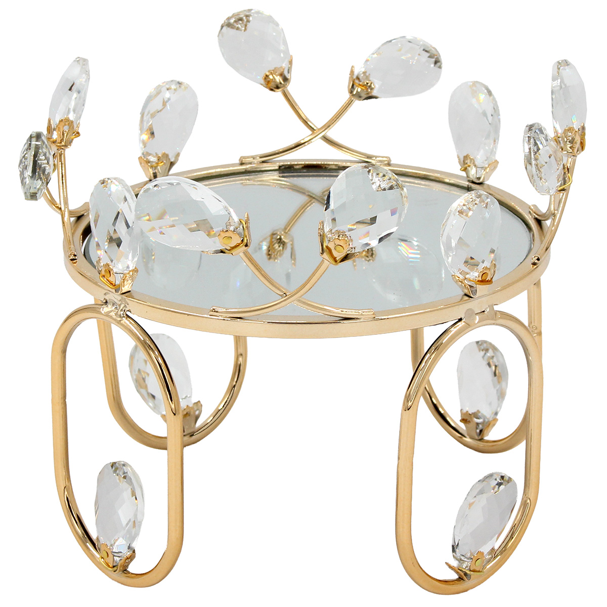 Τραπεζάκι - Stand διακοσμητικό μεταλλικό Φ18Χ15 εκ. Χρυσό με κρύσταλλα και καθρέπτη
