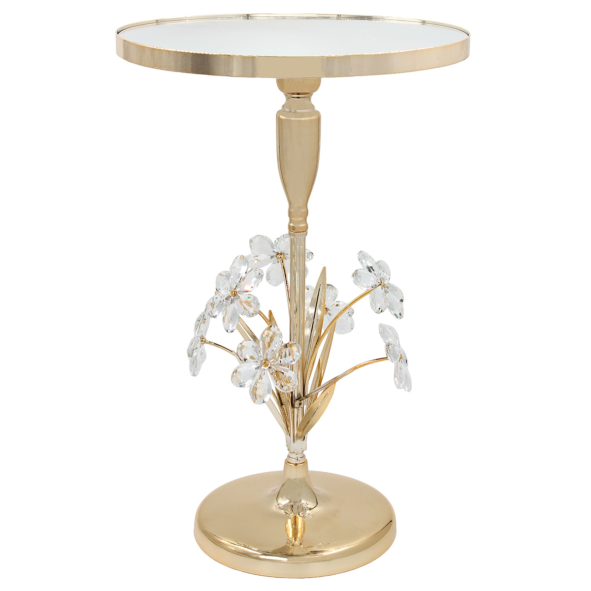 Τραπέζι σαλονιού μεταλλικό Φ35Χ53 εκ. Χρυσό με καθρέπτη και κρύσταλλα