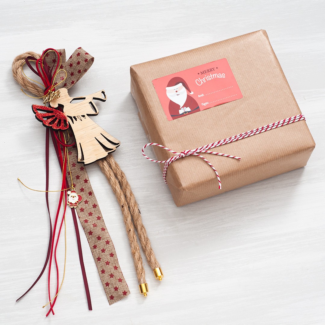 Χριστουγεννιάτικο κρεμαστό γούρι με ξύλινη ζωγραφιστή κάλτσα και στολισμένο με κορδέλες σε πράσινες αποχρώσεις. Το γούρι είναι τοποθετημένο σε χάρτινο κουτί craft,συσκευασμένο με χαρτί περιτυλίγματος και αυτοκόλλητη ετικέτα αποστολής.