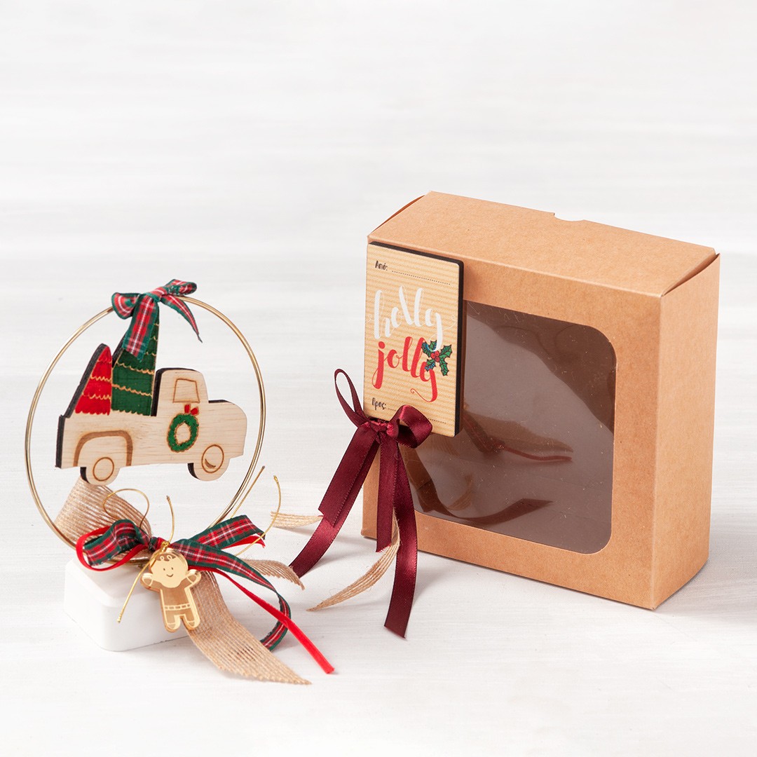Χριστουγεννιάτικο διακοσμητικό σε γύψινη βάση με ξύλινο φορτηγάκι που κουβαλάει δέντρα . Η βάση είναι στολισμένη με κορδέλες .Στην τιμή περιλαμβάνεται το χάρτινο κουτί δώρου που είναι τοποθετημένο το γούρι και η ετικέτα αποστολής.